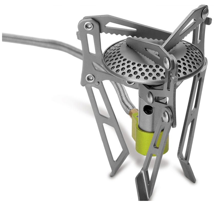 Prin utilizarea titanului, s-a obtinut o greutate remarcabila de doar 98 g, ceea ce face acest arzator extrem de portabil si eficient.