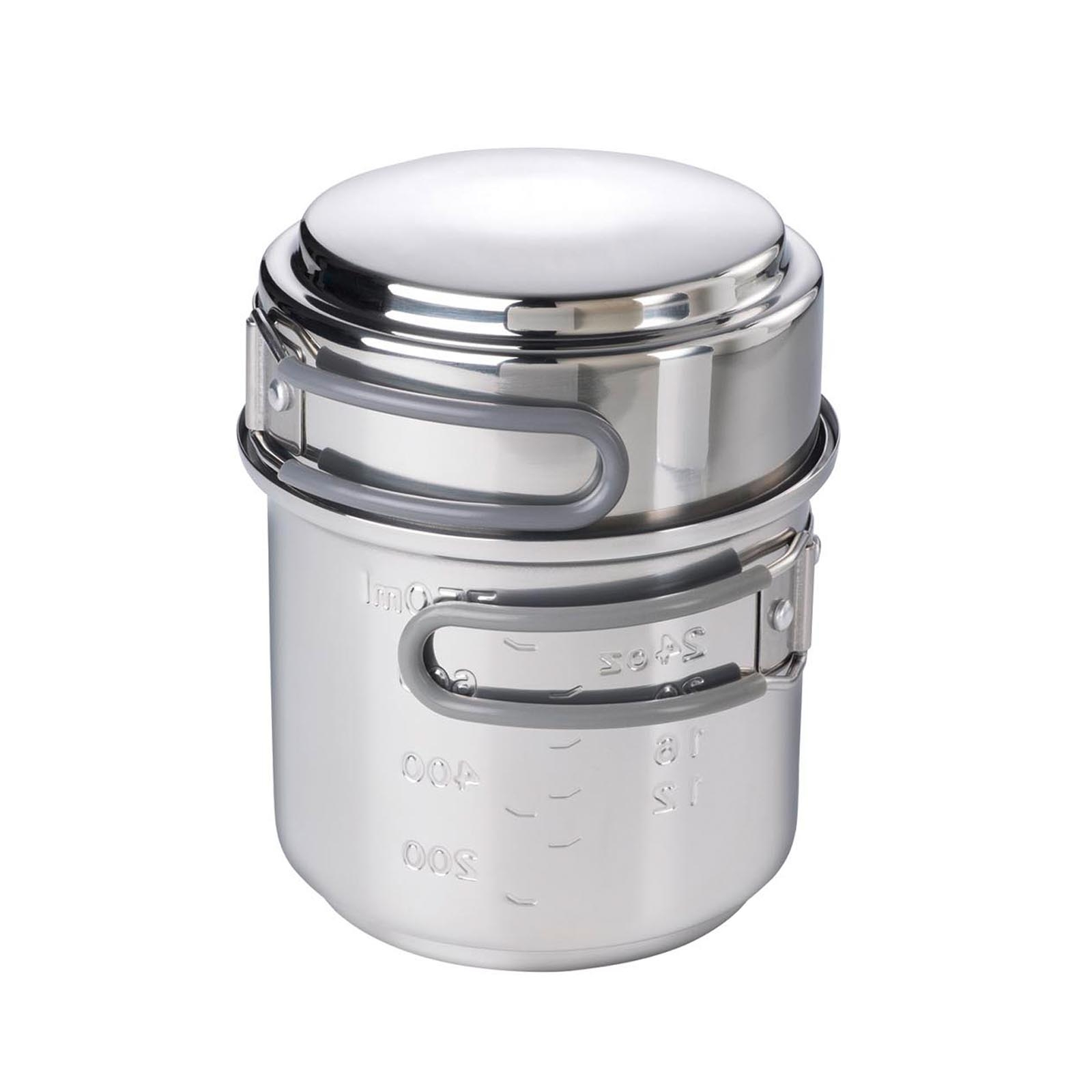 Acest set de gătit cu arzător pe alcool este atât compact, cât și versatil. Capacitatea oalei mai mari (985 ml) este suplimentată cu un capac care servește drept a doua oală de 470 ml. Setul este disponibil în două materiale: oală din oțel inoxidabil 18/8 sau aluminiu anodizat dur. Aceste oale sunt ideale pentru excursii de 1-2 persoane.
