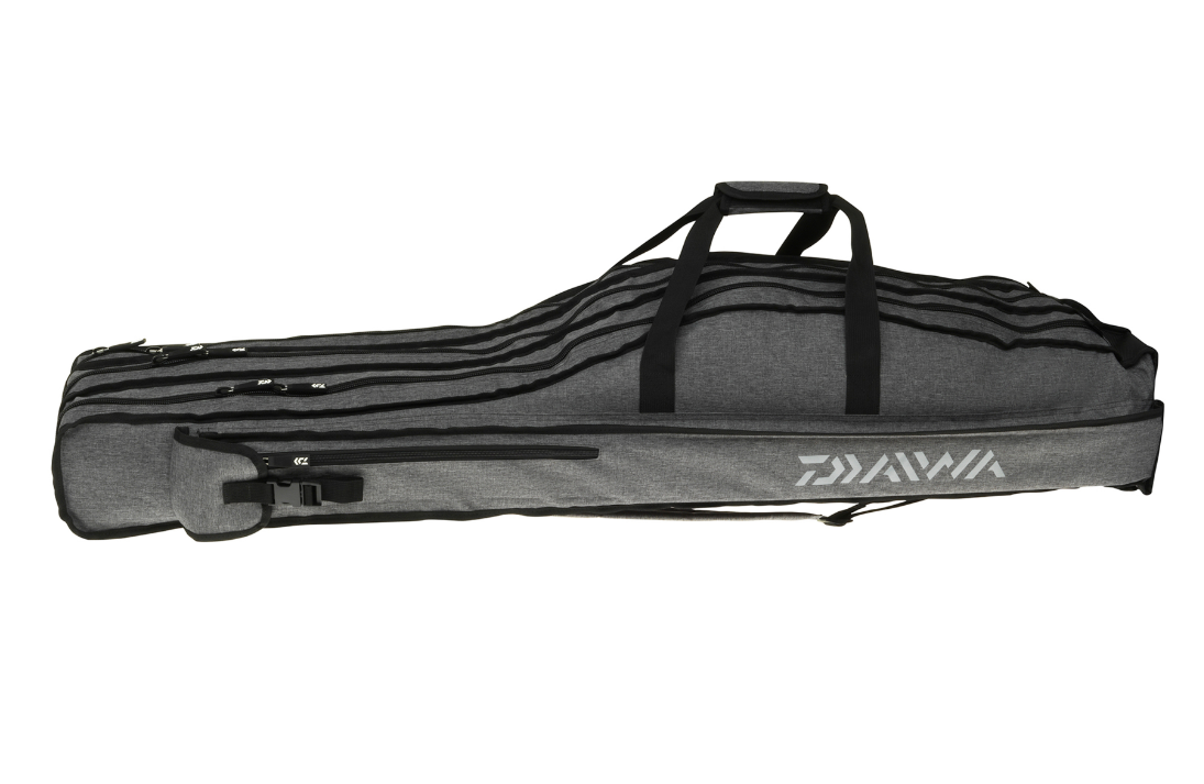 Husă clasică căptușită groasă pentru trei lansete complet echipate. Buzunarul frontal lung cu fermoar supradimensionat, pentru acces ușor, poate păstra o umbrelă sau echipamente de stand. Are curele de umăr căptușite în stil rucsac și mâner de transport. Două mânere în partea de sus și de jos permit depozitarea agățată. Fabricat din material hidrofug cu fund cauciucat pentru a evita umezirea pe pământul ud.