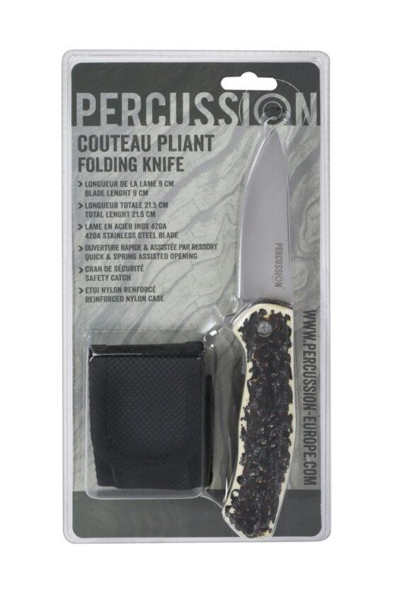 Briceag cu lama 420 A din oțel inoxidabil și mânerul imitație corn.