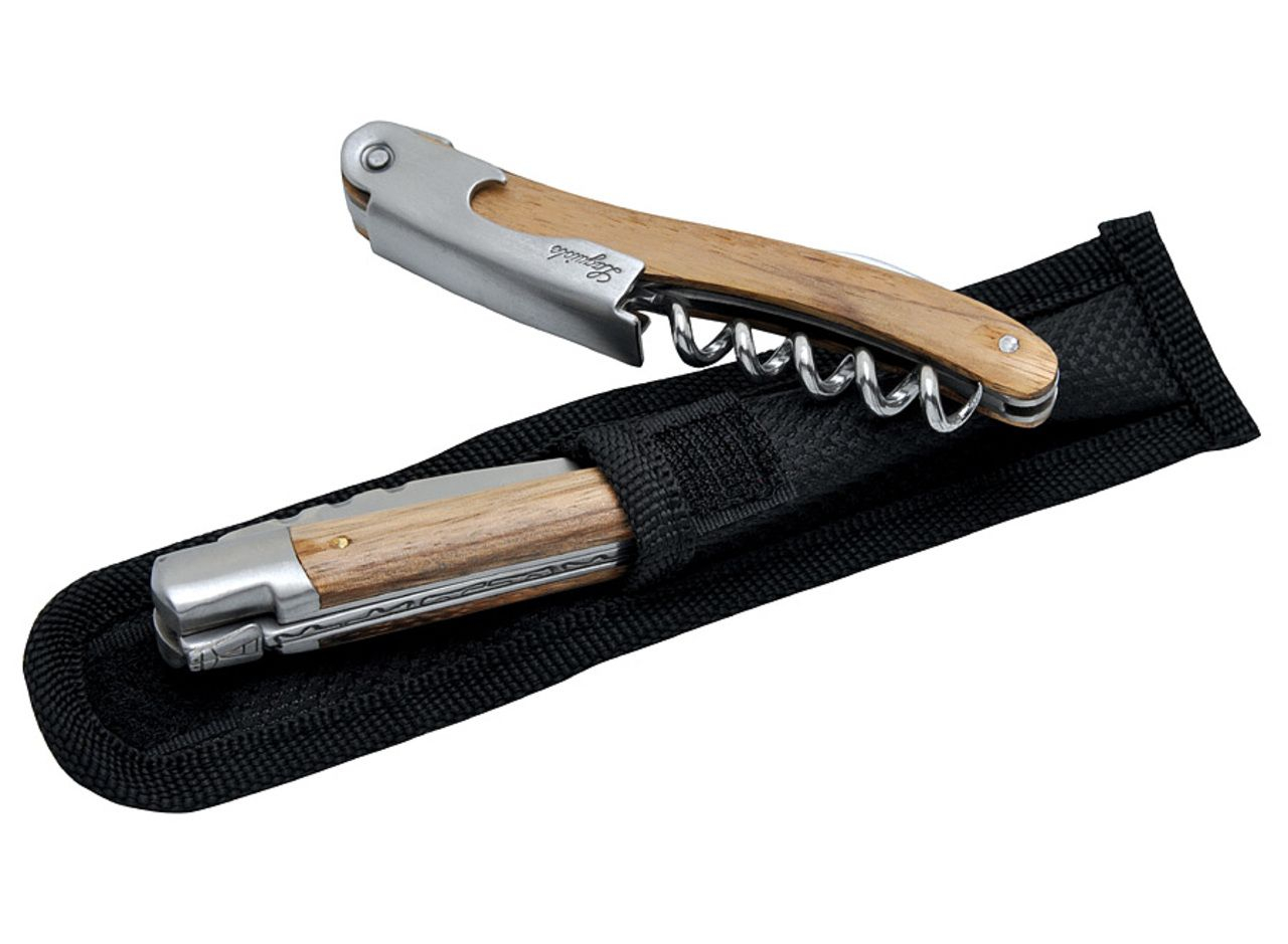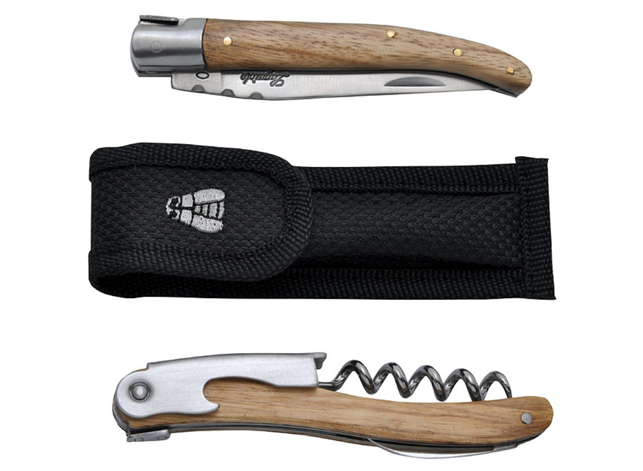 Cutitul pliabil dispune de lama din otel inoxidabil 420, cunoscuta pentru durabilitate si usurinta in ascutire, avand si un sistem de blocare cu crestatura fortata pentru siguranta. Tirbusonul profesional este dotat cu spirala din otel inoxidabil cu 5 spire, un taietor micro-serrat pentru capisonul sticlei si deschizator de sticle, fiind un accesoriu de incredere pentru orice somelier.