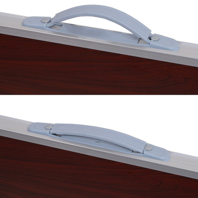 Masa Balaton de la Cattara este o masa de calitate cu cadru din aluminiu, cu o suprafata plana si ferma, cu un model care imita lemnul. Masa este echipată cu două picioare pliabile, care pot fi fixate in pozitie astfel incat asigură stabilitate ridicată.
