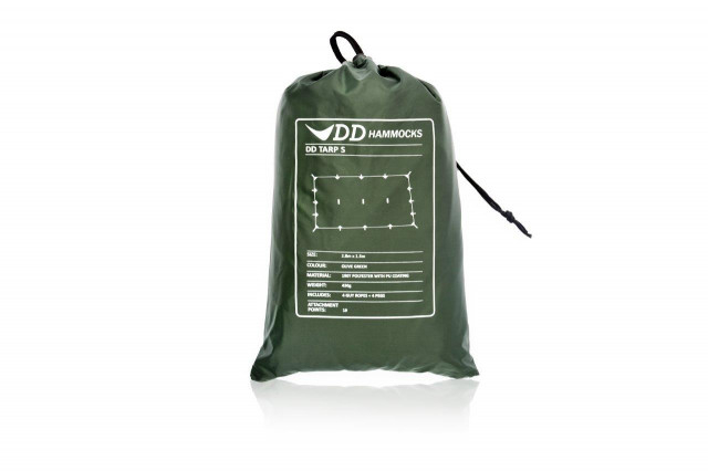 Tenda S Prelata Olive Green DDHammocks 2.8m x 1.5m - 0610370637272 Tenda S Olive Green DD Hammocks o solutie la indemana impotriva ploii pentru excursii scurte. Protejeaza mai mult capul si picioarele avand lateralele scurtate pentru a economisi din greutate. Este acoperisul perfect Astfel la 2.8m lungime si 1.5m latime Tenda S DD Hammocks poate proteja de ploaie pana la 2 persoane+ echipament usor 1 persoana+ bicicleta/ ruscac. O poti folosi in forma literei A pentru acoperisul hamacului sau o poti folosi ca Sopron pentru intrarea in cort. Tenda S Olive Green Toate cele 19 puncte de ancorare sunt ranforsate cu un material PVC foarte durabil. Pentru Ghid de instalare a Tendelor Prelatelor > Click Aici Caracteristici: - material 190T polyester cu membrana impermeabila cusaturi sigilate - rezistenta apa: 3000mm coloana de apa - ancorare:19 puncte de ancorare 16 pe laturi si colturi 3 pe mijloc- ridge line - greutate: 450g doar tenda fara accesoriile de ancorare - dimensiune: 2.8m x 1.5m adapost pentru 1 persoana + bagajerie Coletul Contine: - tenda - 4 cuie de ancorare+ cordelina