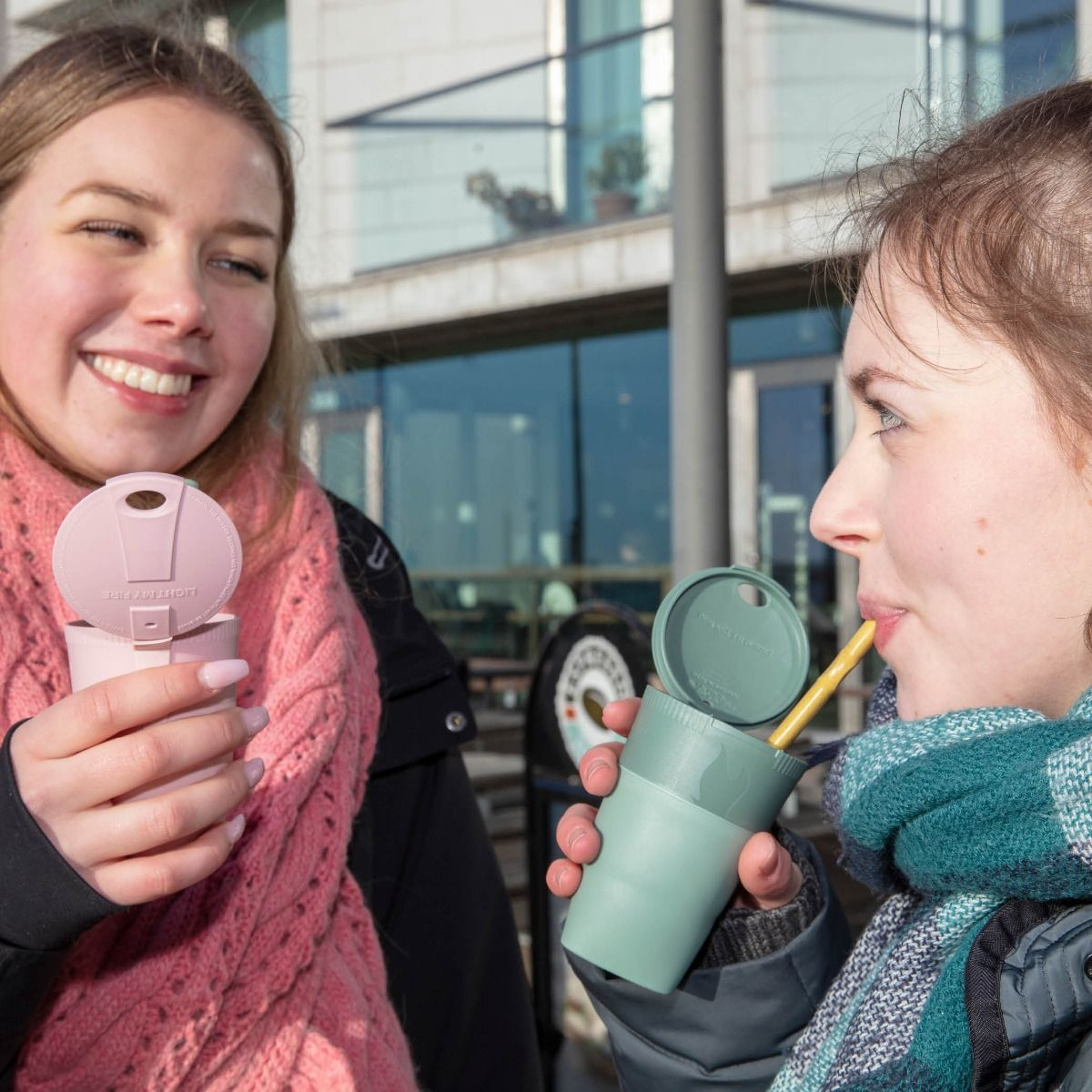 Paharul este fabricat din bioplastic pe baza de trestie de zahar, iar partea elastica din TPE pe baza de plante.