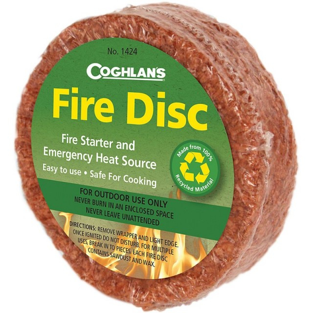 Discuri pentru aprinderea focului Coghlans - C1426 Discurile pentru aprinderea focului de la Coghlans sunt o sursa de combustibil ideale pentru aprinderea focului de tabara.Fabricate din lemn de cedru si ceara rafinata ele sunt proiectate sa se aprinda usor si sa intretina focul. Deoarece cele mai multe mancaruri nu au nevoie de mai mult de 30 minute sa fie gata pot fi folosite in cazuri de urgenta la pregatirea unei mese rapide. Fiecare disc este marcat pe o parte pentru a fi putea fi rupt mai usor. Caracteristici: - Greutate: 99.2 gr - Dimensiune:: 2.5 cm inaltime 10.2 cm diametru - Timp de ardere: 30 minute