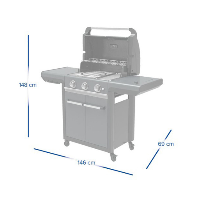Gratar pe gaz Campingaz seria 3 Premium S - 2000037280 Creati adevarate festinuri culinare in aer liber cu ajutorul gratarului Campingaz seria 3 Premium S Beneficiind de performantele arzatoare din otel inoxidabil cu reglaj independent si tehnologie Blue Flame Power System. Aceasta tehnologie asigura alimente mai suculente fara arsuri intrucat previne eruptia sporadica a flacarilor in timpul prepararii. Suprafata mare de gatire din fonta emailata cu portelan asigura o excelenta retentie a caldurii si ofera suficient spatiu pentru a gati pentru grupuri mari. Fiecare dintre cele 3 arzatoare poate fi ajustat separat astfel putand sa gatiti simultan preparate care au nevoie de temperaturi de gatire diferite iar ochiul arzator din lateral va permite sa stati numai langa gratar si sa nu mai fiti nevoiti sa mergeti inapoi in bucatarie pentru a prepara un sos. Datorita posibilitatii montarii unei rotiserii si sistemului inovator culinar modular cu acest gratar nicio zi nu va semana cu alta. Sistemul culinar modular – pur si simplu scoateti inelul interior al gratarului si asezati unul din aceesoriile pentru sistemul culinar modular achizitionate separat. De ce sa nu serviti o pizza proaspata coapta pe o piatra pentru pizza? Sau sa savurati o paella delicioasa gatita intr-o tigaie pentru paella non aderenta autentic spaniola? Daca mancarurile exotice gatite la foc intens sunt pe gustul dumneavoastra atunci aruncati in lupta wok-ul din otel carbon cu tratament anti aderenta. Sau puteti sa gatiti un pui delicios cu ajutorul grillului pentru pui la gratar. Toate aceste sunt posibile acum cu ajutorul sistemului culinar modular si va va fi mult mai simplu sa va impresionati musafirii si sa serviti impreuna o masa bogata si diversificata nu doar un gratar. Nu doar gatitul este facil cu gratarul Campingaz seria 3 Premium S ci si curatarea lui cu ajutorul noului sistem Campingaz InstaClean Aqua System . Noul design permite accesul rapid la sertarul de colectare a grasimii pe care acum il gasim in partea frontala a gratarului sub butoane. Tava se umple cu apa si are rolul de a colecta si raci in prealabil grasimea rezultata in urma prepararii alimentelor. Sertarul comunica printr-o fanta asigurata cu dop cu vasul de colectare cu capacitate mare care se afla exact sub ea fiind usor accesibil prin deschiderea usilor frontale. Vasul de colectare este prevazut cu un filtru care separa grasimile dense astfel facilitand curatarea usoara. O alta noutate extrem de importanta o consta faptul ca in sertarul de jos incape butelia de 13kg in pozitie verticala. Atentie! Functioneaza cu amestec butan propan butelie Atentie!- Regulatorul utilizat trebuie sa fie de 30 mBar! Pentru mai multe informatii referitoare la montare si intretinere > Click Aici Pentru mai multe informatii despre tehnologiile Campingaz > Click Aici Caracteristici: - suprafata gatire cm²: 2806; - dimensiuni suprafata gatit cm: 46 x 61 - tehnologie arzatoare: din otel inoxidabil cu tehnologie Blue Flame System; - numar arzatoare: 3 - putere kW: 10.2 + 2.3; - consum gaz g / h: 741 + 167; - sistem curatare: InstaClean ® Aqua Pro cu sertare amplasate frontal; - material suprafata gatire: fonta emailata; - configuratie suprafata gatire: Grill cu sistem culinar modular / plita reversibila; - sistem culinar modular: DA - raft incalzire cm: 17 x 62; - posibilitate montare rotisor : DA; - inaltime cm: 92 - aprindere: Electronic - termometru: DA - mese laterale pliabile: fomasa din partea stanga pliabila; - arzator lateral: DA; - material capac: otel vopsit + aluminiu vopsit; - material corp: potel vopsit; - configurare trolley: usi lateral si spate inchis; - roti: 4 roti; - depozitare butelie gaz: 13 kg; - greutate Kg: 69 - dimensiuni deschis L x W x H in cm: 146 x 69 x 148; - dimensiuni inchis L x W x H in cm: 124 x 60 x 121 - Garantir: 5 ani pentru capac 5 ani pentru arzatoare 5 ani pentru suprafata de gatire; 5 ani garantie pentru arzatoarele blue flame 5 ani garantie pentru suprafata de gatire Garantie comerciala 24 luni Necesita Montaj Toate gratarele pe gaz comercializate sunt destinate exclusiv utilizarii cu butelii butan propan pentru uz casnic și vin echipate cu duze potrivite pentru butelie. NU SUNT PROIECTATE in vederea conectarii la rețeaua de distribuție gaz metan și schimbarea duzelor pentru adaptare atrage pierderea garanției. Tehnologii incorporate: Sistem culinar modular: Poti gati o larga varietate de retete cu ajutorul acestui sistem inovator. Pur si simplu scoateti inelul interior al gratarului si asezati unul din accesoriile pentru sitemul culinar modular achizitionate separat. De ce sa nu serviti o pizza proaspata coapta pe o piatra pentru pizza? Sau sa savurati o paella delicioasa gatita intr-o tigaie pentru paella non aderenta autentic spaniola? Daca mancarurile exotige gatite la foc intens sunt pe gustul dumneavoastra atunci aruncati in lupta wok-ul din otel carbon cu tratament anti aderenta. Sau puteti sa gatiti un pui delicios cu ajutorul grillului pentru pui la gratar. Toate aceste sunt posibile acum cu ajutorul sistemului culinar modular si va va fi mult mai simplu sa va impresionati musafirii si sa serviti impreuna o masa bogata si diversificata Tehnologie Insta Clean Aqua System; - confera o curatare usoara si rapida sertarele pentru colectarea grasimii sunt in partea frontala si pe dreapta si pe stanga; Tehnologie Blue Flame: Aceasta tehnologie asigura alimente mai suculente fara arsuri intrucat previne eruptia sporadica a flacarilor in timpul prepararii. Arzatoare din otel inoxidabil: - confera temperatura uniforma pe suprafata de gatire; - confera temperatura ridicata pentru gatirea directa; - rezista la utilizare indelungata;
