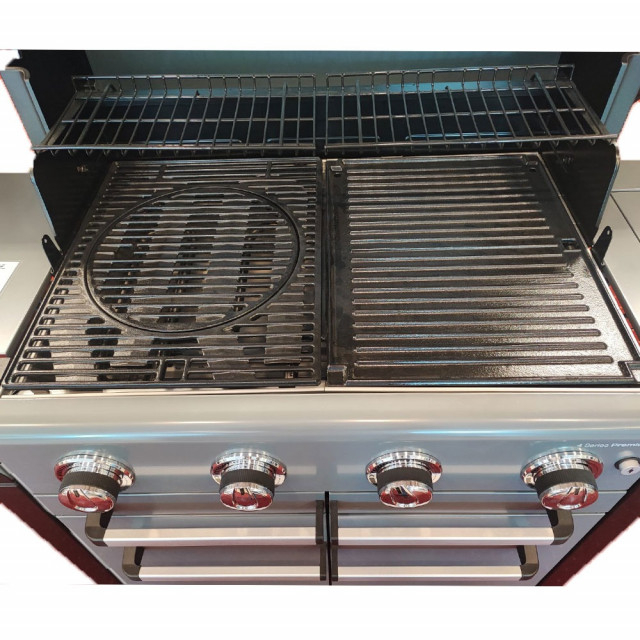 Gratar pe gaz Campingaz seria 4 Premium S - 2000037286 Creati adevarate festinuri culinare in aer liber cu ajutorul gratarului Campingaz seria 4 Premium S Beneficiind de performantele arzatoare din otel inoxidabil cu reglaj independent si tehnologie Blue Flame Power System. Aceasta tehnologie asigura alimente mai suculente fara arsuri intrucat previne eruptia sporadica a flacarilor in timpul prepararii. Suprafata mare de gatire din fonta emailata cu portelan asigura o excelenta retentie a caldurii si ofera suficient spatiu pentru a gati pentru grupuri mari. Fiecare dintre cele 4 arzatoare poate fi ajustat separat astfel putand sa gatiti simultan preparate care au nevoie de temperaturi de gatire diferite iar ochiul arzator din lateral va permite sa stati numai langa gratar si sa nu mai fiti nevoiti sa mergeti inapoi in bucatarie pentru a prepara un sos. Datorita posibilitatii montarii unei rotiserii si sistemului inovator culinar modular cu acest gratar nicio zi nu va semana cu alta. Sistemul culinar modular – pur si simplu scoateti inelul interior al gratarului si asezati unul din aceesoriile pentru sistemul culinar modular achizitionate separat. De ce sa nu serviti o pizza proaspata coapta pe o piatra pentru pizza? Sau sa savurati o paella delicioasa gatita intr-o tigaie pentru paella non aderenta autentic spaniola? Daca mancarurile exotice gatite la foc intens sunt pe gustul dumneavoastra atunci aruncati in lupta wok-ul din otel carbon cu tratament anti aderenta. Sau puteti sa gatiti un pui delicios cu ajutorul grillului pentru pui la gratar. Toate aceste sunt posibile acum cu ajutorul sistemului culinar modular si va va fi mult mai simplu sa va impresionati musafirii si sa serviti impreuna o masa bogata si diversificata nu doar un gratar. Nu doar gatitul este facil cu gratarul Campingaz seria 4 Onyx S ci si curatarea lui cu ajutorul noului sistem Campingaz InstaClean Aqua System . Noul design permite accesul rapid la sertarul de colectare a grasimii pe care acum il gasim in partea frontala a gratarului sub butoane. Tava se umple cu apa si are rolul de a colecta si raci in prealabil grasimea rezultata in urma prepararii alimentelor. Sertarul comunica printr-o fanta asigurata cu dop cu vasul de colectare cu capacitate mare care se afla exact sub ea fiind usor accesibil prin deschiderea usilor frontale. Vasul de colectare este prevazut cu un filtru care separa grasimile dense astfel facilitand curatarea usoara. O alta noutate extrem de importanta o consta faptul ca in sertarul de jos incape butelia de 13kg in pozitie verticala. Atentie! Functioneaza cu amestec butan propan butelie Atentie!- Regulatorul utilizat trebuie sa fie de 30 mBar! Pentru mai multe informatii referitoare la montare si intretinere > Click Aici Pentru mai multe informatii despre tehnologiile Campingaz > Click Aici Caracteristici: - suprafata de gatit cm²: 3312; 46 x 72 cm - arzatoare din otel inoxidabil cu Blue Flame Power System; - Nnumar arzatoare: 4; - putere kW: 13.6 + 2.3; - consum gaz g/h: 330 + 167 - sistem curatare: InstaClean® Aqua Pro; - material suprafata gatire: fonta emailata cu portelan; - configuratie suprafata gatire: sistem culinar modular + plita reversibila; - gratar pentru mentinerea alimentelor calde cm: 2 17 x 35; - compatibil rotiserie: DA; - inaltime de gatire cm: 95; - aprindere: electronica; - termometru: Da; - mese laterale pliabile: doar cea din stanga; - arzator lateral: DA; - material capac: otel vopsit cu aluminiu vopsit; - Trolley material: otel vopsit; - roti: DA echipat cu 4 roti; - posibilitate depozitare butelie: 13 kg; - greutate kg: 77; - dimensiuni W x D x H in cm deschis: 157 x 69 x 148 ; - dimensiuni W x D x H in cm inchis: 135 x 60 x 119 ; 5 ani garantie pentru arzatoarele Blue Flame 5 ani garantie pentru suprafata de gatire Garantie comerciala 24 luni Necesita Montaj Toate gratarele pe gaz comercializate sunt destinate exclusiv utilizarii cu butelii butan propan pentru uz casnic și vin echipate cu duze potrivite pentru butelie. NU SUNT PROIECTATE in vederea conectarii la rețeaua de distribuție gaz metan și schimbarea duzelor pentru adaptare atrage pierderea garanției. Sistem culinar modular: Poti gati o larga varietate de retete cu ajutorul acestui sistem inovator. Pur si simplu scoateti inelul interior al gratarului si asezati unul din accesoriile pentru sitemul culinar modular achizitionate separat. De ce sa nu serviti o pizza proaspata coapta pe o piatra pentru pizza? Sau sa savurati o paella delicioasa gatita intr-o tigaie pentru paella non aderenta autentic spaniola? Daca mancarurile exotige gatite la foc intens sunt pe gustul dumneavoastra atunci aruncati in lupta wok-ul din otel carbon cu tratament anti aderenta. Sau puteti sa gatiti un pui delicios cu ajutorul grillului pentru pui la gratar. Toate aceste sunt posibile acum cu ajutorul sistemului culinar modular si va va fi mult mai simplu sa va impresionati musafirii si sa serviti impreuna o masa bogata si diversificata Tehnologie Insta Clean Aqua System; - confera o curatare usoara si rapida sertarele pentru colectarea grasimii sunt in partea frontala si pe dreapta si pe stanga; Tehnologie Blue Flame: Aceasta tehnologie asigura alimente mai suculente fara arsuri intrucat previne eruptia sporadica a flacarilor in timpul prepararii. Arzatoare din otel inoxidabil: - confera temperatura uniforma pe suprafata de gatire; - confera temperatura ridicata pentru gatirea directa; - rezista la utilizare indelungata;