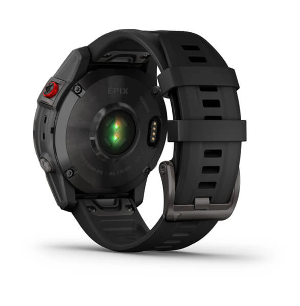 Carcasa Garmin Epix™ PRO Sapphire este realizată din polimer întărit și oțel. In interiorul acestei carcase funcționeaza un modul cu o multitudine de functii, utile in principal pentru sport si activitati in aer liber. Diametrul afișajului este de 1,3”. Ceasul are hărți preinstalate în memorie cu navigare automată, este echipat cu conectivitate WiFi și oferă redare de muzică din propria memorie (32 GB), în care puteți încărca propriile fișiere muzicale precum și liste de redare. de la servicii muzicale de streaming, cum ar fi Spotify sau Deezer.