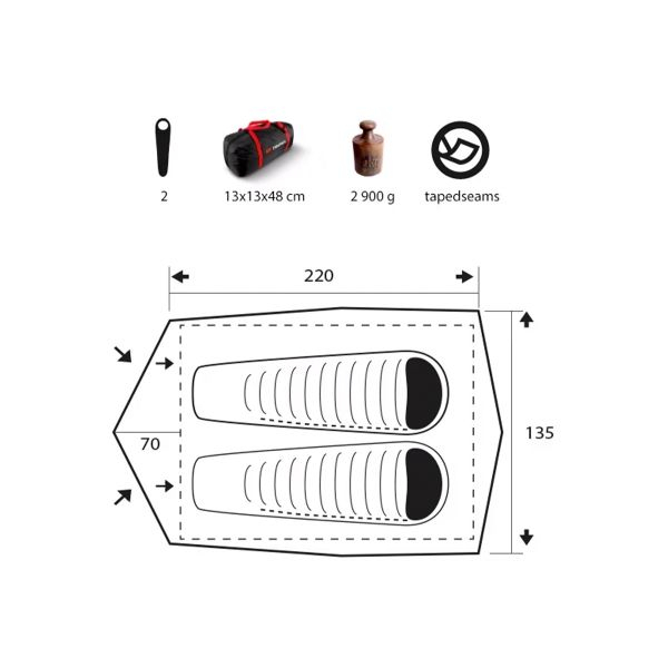 proprietati: plasa de depozitare, kit de reparatii, antecamera pentru gatit si depozitare, elemente reflectorizante, plasa de tantari autoportanta, buzunare de depozitare, deschidere variabila a usii, ventilatie