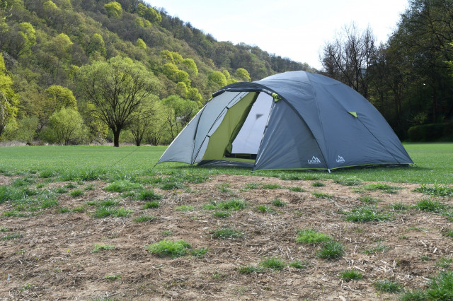 Cort Plua Cattara 4 persoane 344x250x150cm PU3000mm - TT13360 Cortul Plua de la Cattara este potrivit pentru orice vreme. Cu dimensiunile de 250 x 344 x 150 cm cortul spatios este potrivit pentru 4 persoane. Usa este prevazuta cu fermoar la interior si la exterior si este de asemenea echipata cu plasa care asigura protectie impotriva tantarilor si a altor insecte mici. In interiorul cortului exista buzunare laterale pentru depozitarea diverselor articole. Spatele cortului este prevazut cu o fereastra de ventilatie cu acoperis reglabil pentru circulatia optima a aerului. Pentru reducerea semnificativa a umiditatii din interiorul cortului este folosit un material rezistent la apa testat cu o coloana de apa de 3000 mm PU 3000. Merita mentionat cusaturile lipite care impiedica infiltrarea umiditatii si a apei. Podeaua este intarita si inaltata. Betele sunt realizate din fibre de sticla durabile. Datorita dimensiunilor pachetului de 62 x 15 x 15 cm cortul este compact si portabil. Caracteristici: dimensiuni: 250 x 344 x 150 cm material perete: 190T poliester material podea: 210D oxford impermeabil: da PU 3000 mm culoare: gri dimensiuni in pachet: 62 x 15 x 15 cm greutate: 4.9kg