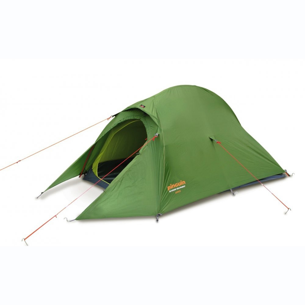 Cortul Pinguin Arris este un cort dublu stratificat, având un cort interior rectangular cu intrare pe o singura parte. Prelata exterioara formează un vestibul triunghiular, ideal pentru depozitarea rucsacurilor sau altor echipamente.