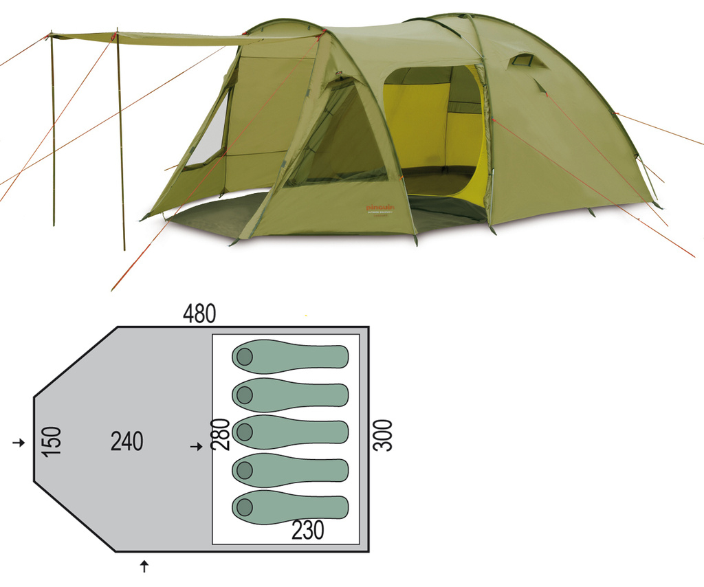 Alege cortul Pinguin Campus 5 pentru o experiență de camping confortabilă și ușor de montat, ideală pentru familii sau grupuri mai mari!