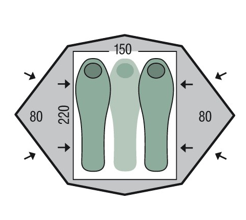 Folia exterioară este realizată din nylon RipStop cu tratament UV și siliconizare dublă pe ambele fețe, având o coloană de apă de 4.000 mm. În plus, cusăturile sunt sigilate prin fire de expansiune, care se umflă la contactul cu apa, sigilând orificiile acelor de cusut.