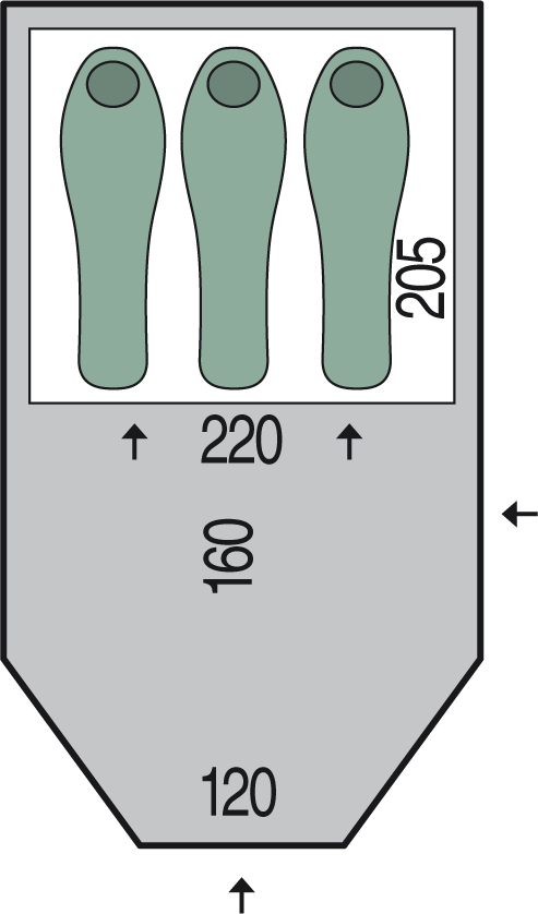 Cortul Horizon este dublu stratificat, cu un interior dreptunghiular si un strat exterior (ploaie).