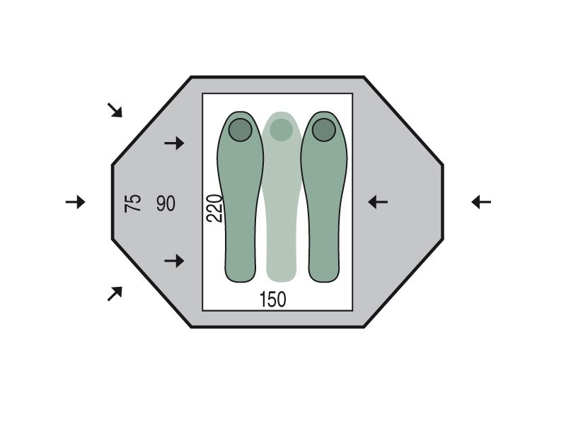 Cortul este dublu strat, constând dintr-un cort interior și o folie exterioară (rain fly). Cortul interior are un plan dreptunghiular și două intrări laterale, în timp ce folia exterioară are formă octogonală, cu două intrări și vestibule pentru depozitarea echipamentului.