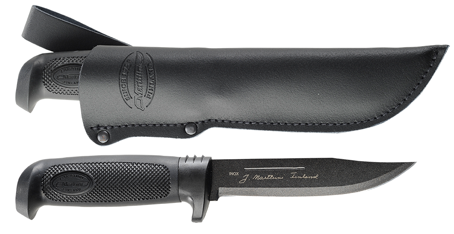 Cuțit dedicat pentru vânătoare și activități în aer liber pentru utilizare intensă. Mânerul este mai mare decât de obicei, se potrivește perfect într-o mână de dimensiuni mai mari. Stratul martef protejează împotriva murdăriei și a umezelii, reducând totodată fricțiunea.