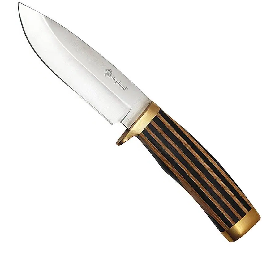 Cuțit lamă de ​​11 cm, mâner model în dungi, teacă din poliamidă.