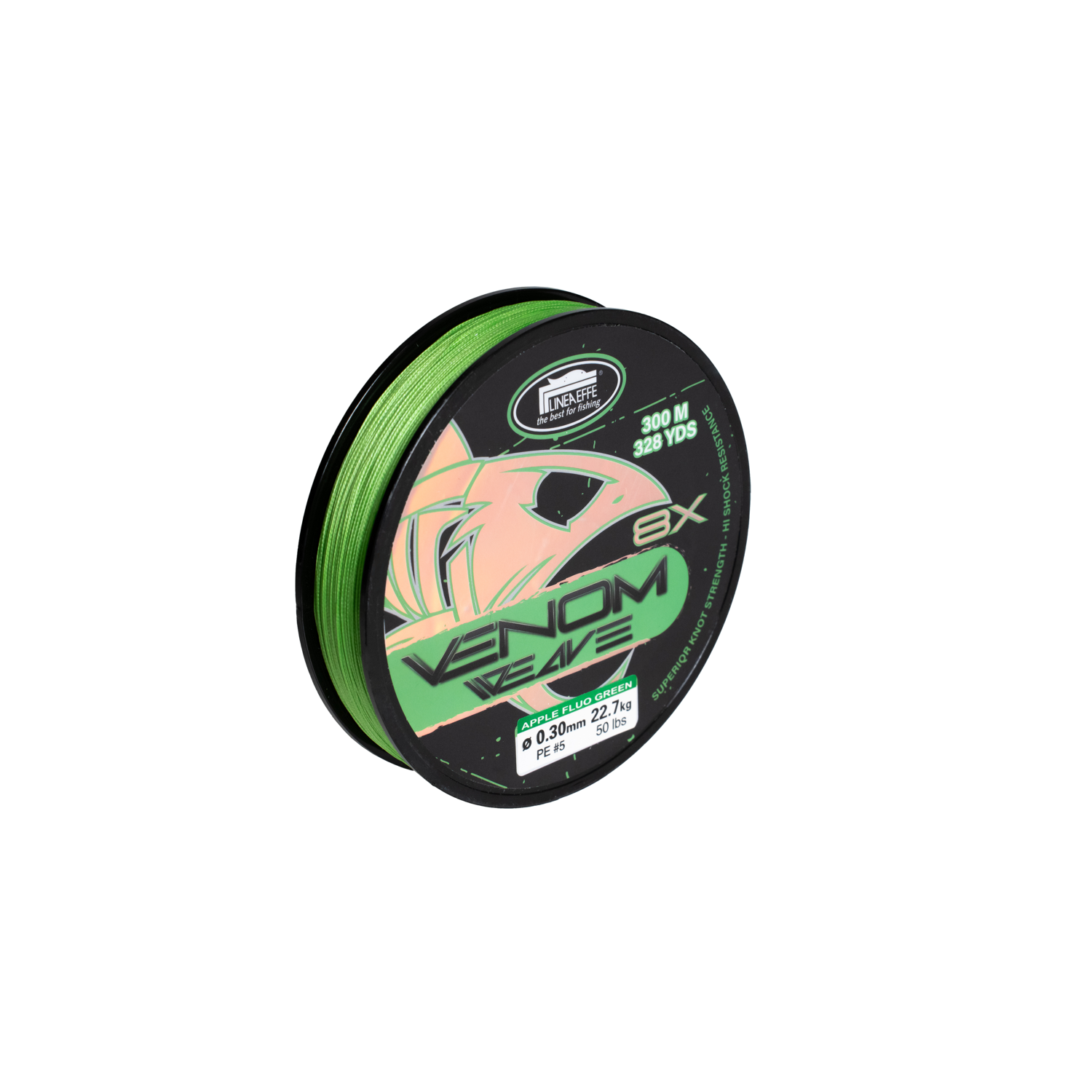 Firul Lineaeffe Venom Weave este fabricat din 8 filamente împletite (8X), care garantează o structură compactă, o suprafață netedă și o rezistență mai mare la abraziune. Perfect pentru tehnici precum spinning , surfcasting și coastal trolling .