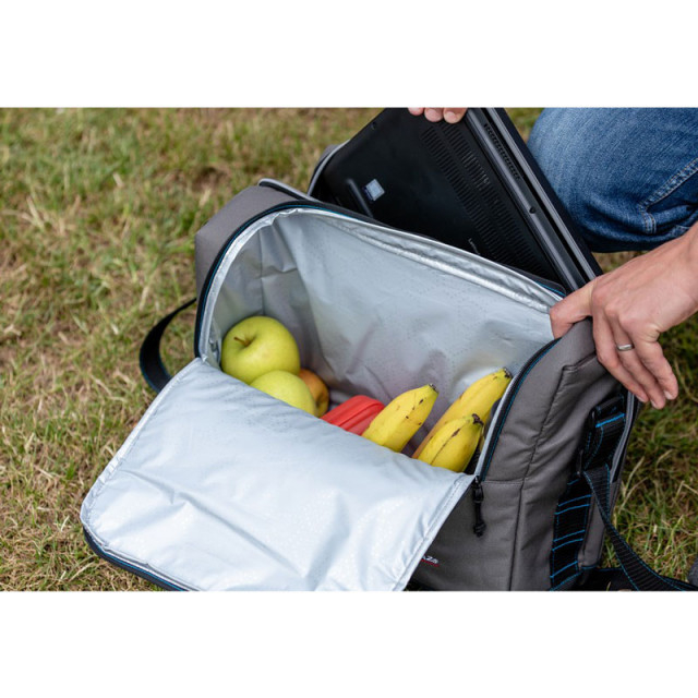 Geanta termoizolanta The Office Messenger 17l Campingaz - 2000036892 Geanta termoizolanta The Office 17 L este ideala in viata de zi cu zi sau la o plimbare in aer liber. Nu numai ca geanta Messenger 17L va tine gustarile si bauturile reci dar designul urban va face usoara asortarea la tinuta. Este echipata cu bretea pentru purtare pe umar se inchide cu fermoar iar in partea frontala gasim un buzunar pentru echipamente electronice. Exteriorul gentii este fabricat din poliester de inalta calitate iar garniturile interioare contin un agent antimicrobian care reduce bacteriile. Caracteristici: - capacitate: 17 L - izolatie: 6mm closed cell EPE polyethylena expandata spuma - capacitate sticle: 7 x 1.5 L - Features: shoulder strap top zip closure non-insulated side pockets for accessories. - autonomie +/- 1 ° C: 12 ore with FreezPack ® vantute separat - greutate Kg: 0.55 - dimensiuni L x W x H in cm: 16 x 43 x 33 Garantie 24 luni