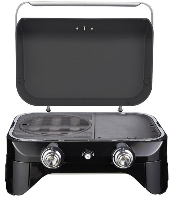 Gratar Campingaz Attitude 2100 LX - 2000035660 Gratarul Attitude 2100 LX este un model care se poate utiliza pe masa datorita designului ingenios si a dimensiunilor reduse. De indata de capacul este ridicat putem observa suprafata de gatire din fonta in doua zone prima zona cu sistem culinar modular si a doua plita tip grill. Sistem Culinar Modular: Prin inlaturarea cercului din fonta se pot monta diverse accesorii pentru a diversifica alimentele gatite astfel putem atasa: piatra de pizza tigaia de paella sau sistemul culinar pentru pui intreg. NU ESTE COMPATIBIL CU WOK-ul Tehnologii Incorporate: Curatare simpla datorita sistemului Insta Clean: Curatarea gratarului este simpla datorita tavii pentru colectare grasime montata frontal care faciliteaza scoaterea cu usurinta a pieselor care pot fi curatate manual sau in masina de spalat vase. Distributie optima a caldurii datorita sistemului Campingaz® Blue Flame burners: Arzatoarele durabile au trei zone care distribuie caldura eficient pe toata suprafata zonei de gatire oferind eficienta si consum optim. Gestionare eficienta a caldurii utilizand termometru incorporat: Termometrul supradimensionat incorporat in capac ofera obtinerea celor mai bune rezultate in cazul gatirii indirecte prin convectie. Aprindere usoara prin sistem electric: Pentru a aprinde flacara nu este nevoie de chibrit intrucat Attitude este echipat cu sistem de aprindere electric bateriile sunt incluse . Atentie! Functioneaza cu amestec butan propan butelie Atentie!- Regulatorul utilizat trebuie sa fie de 30 mBar! Pentru mai multe informatii referitoare la montare si intretinere > Click Aici Pentru mai multe informatii despre tehnologiile Campingaz > Click Aici Caracteristici: - suprafata gatire:: 2100 cm²; - dimensiuni suprafata:: 58 x 36 cm; - arzator: Blue Flame Burner sistem otel aluminium; - numar arzatoare: 2; - putere: 5 kW; - material suprafata gatire: fonta emailata; - configurare suprafata gatire: sistem modular / gratar; - aprindere: electrica; - termometru: incorporat in capac; - material capac: otel vopsit negru; - greutate: 24.5 kg; - dimensiuni deschis L x W x H in cm: 65 x 69 x 73; - dimensiuni inchis L x W x H in cm: 65 x 52 x 36; Garantie 10 ani pentru capacul din otel Garantie comerciala 24 luni