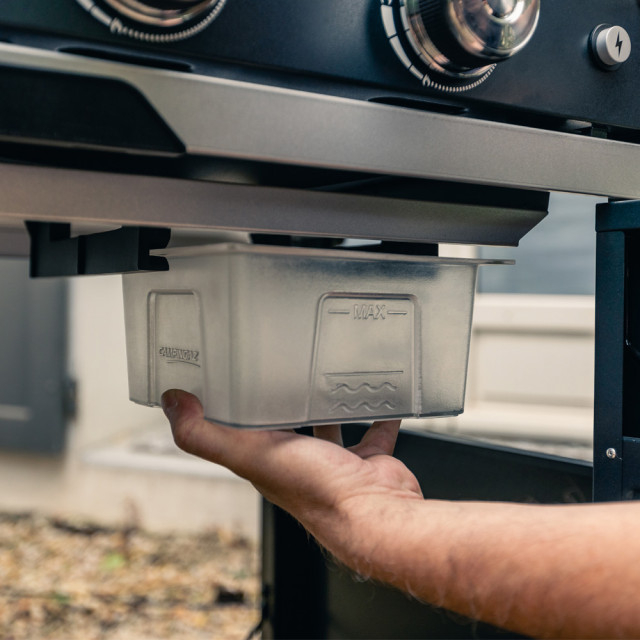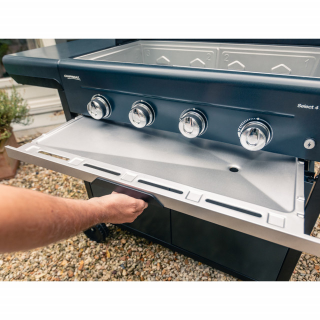 Gratar pe gaz Campingaz Select 4 EXS - 2181088 Noua linie de gratare Campingaz Select sunt fabricate in Italia intr-un design elegant si ergonomic. Patru arzatoare si o suprafata de gratar mai stabila formata pentru a reduce re-aprinderea flacarilor de la sucurile care picura un sertar imbunatatit pentru a capta grasimea sunt avantajele acestui gratar cu gaz. - suprafața de gratar este formata dintr-un gratar modular din fonta și o placa din fonta cu doua fețe care acumuleaza si distribuie perfect caldura - patru arzatoare cu tub din otel inoxidabil protejate de aparatoare de flacara difuzoarele care in acelasi timp ajuta la distribuirea uniforma a temperaturii - butoane de control și un termometru pentru o reglare confortabila a temperaturii - doua mese laterale pentru a extinde suprafața de lucru una este pliabila - arzator lateral - grila de incalzire pentru slow cooking - sertar integrat cu recipient pentru grasimea lichida sau arsa - corpul gratarului este format din doua usi in spatele carora se pot depozita si alte accesorii pentru gratar - aprindere electronica - doar o butelie de 5 kg poate fi pusa in gratar Atentie! Functioneaza cu amestec butan propan butelie Atentie!- Regulatorul utilizat trebuie sa fie de 30 mBar! Pentru mai multe informatii referitoare la montare si intretinere > Click Aici Pentru mai multe informatii despre tehnologiile Campingaz > Click Aici Caracteristici: - alcatuire suprafata de gatire: gratar din fonta culinar modular și plita din fonta cu doua fete neteda si grill - suprafata de gratar: 3000 cm² - dimensiuni suprafata gratar: 75 x 40 cm - arzatoare: 4 tuburi din otel inoxidabil - putere: 143 kW - consum: 1040 g/h - sursa de energie: butelie 5 kg sau 10 kg - dimensiunile gratarului asamblat - capac deschis lxhxh: 142.7 x 65.6 x 142.5 cm - dimensiuni gratar asamblat - capac inchis lxhxh: 126.5 x 57 x 112.5 cm - greutate: 55 kg Garantie comerciala 24 luni Necesita Montaj Toate gratarele pe gaz comercializate sunt destinate exclusiv utilizarii cu butelii butan propan pentru uz casnic și vin echipate cu duze potrivite pentru butelie. NU SUNT PROIECTATE in vederea conectarii la rețeaua de distribuție gaz metan și schimbarea duzelor pentru adaptare atrage pierderea garanției.