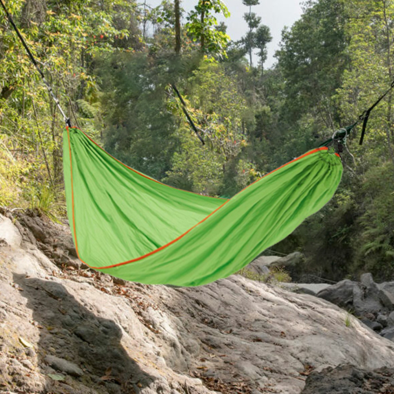 Acest hamac este alegerea perfecta pentru relaxare in aer liber, fie ca te afli intr-o drumetie montana, in gradina sau pe plaja.