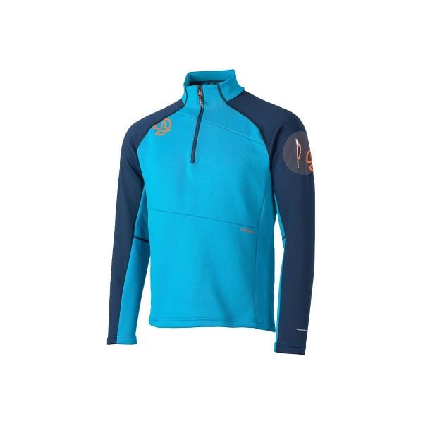 Aceasta bluza multifunctionala, calda si tehnica pentru barbati este un al doilea strat tehnic realizat din tesatura WARMSHELL PRO din nailon reciclat din plase de pescuit.