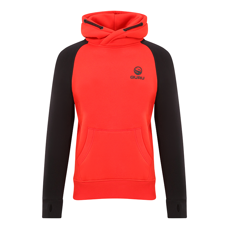 Un hanorac gros și cald, cu logo Guru negru în față și logo Guru mare pe spate. Snururi negre și roșii pentru a se ajusta pe corp. Tivul și mânecile strânse pentru o potrivire mai bună. Un logo brodat „Knowledge is power” pe mâneci. Un singur buzunar frontal cu două buzunare în interior.