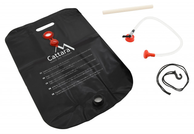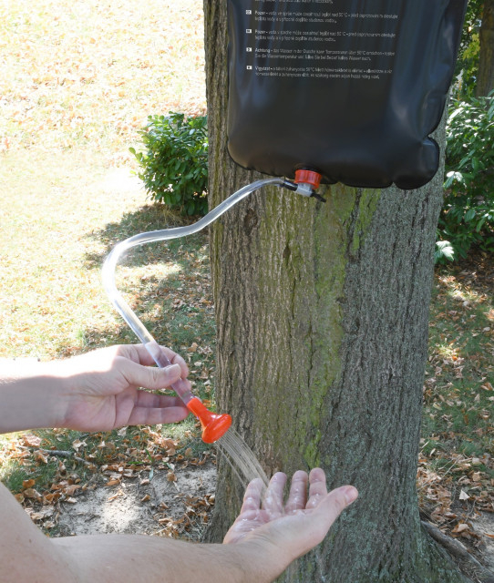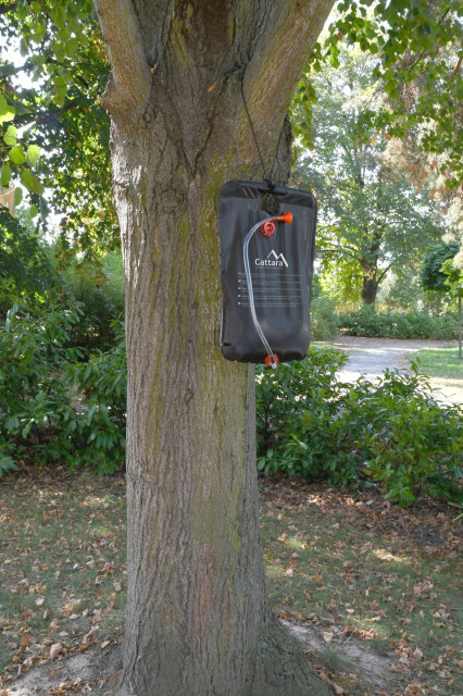 Dus solar portabil ideal pentru camping, cu volum de 20 litri.
