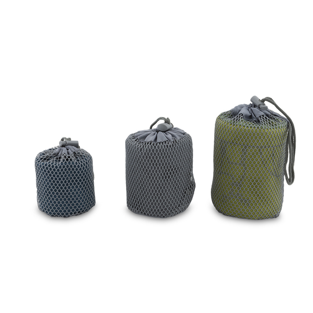 Pentru compresarea prosopului aveti la dispozitie un saculet din plasa cu inchidere snur si opritor. Pe langa greutatea mica este placut la atingere.