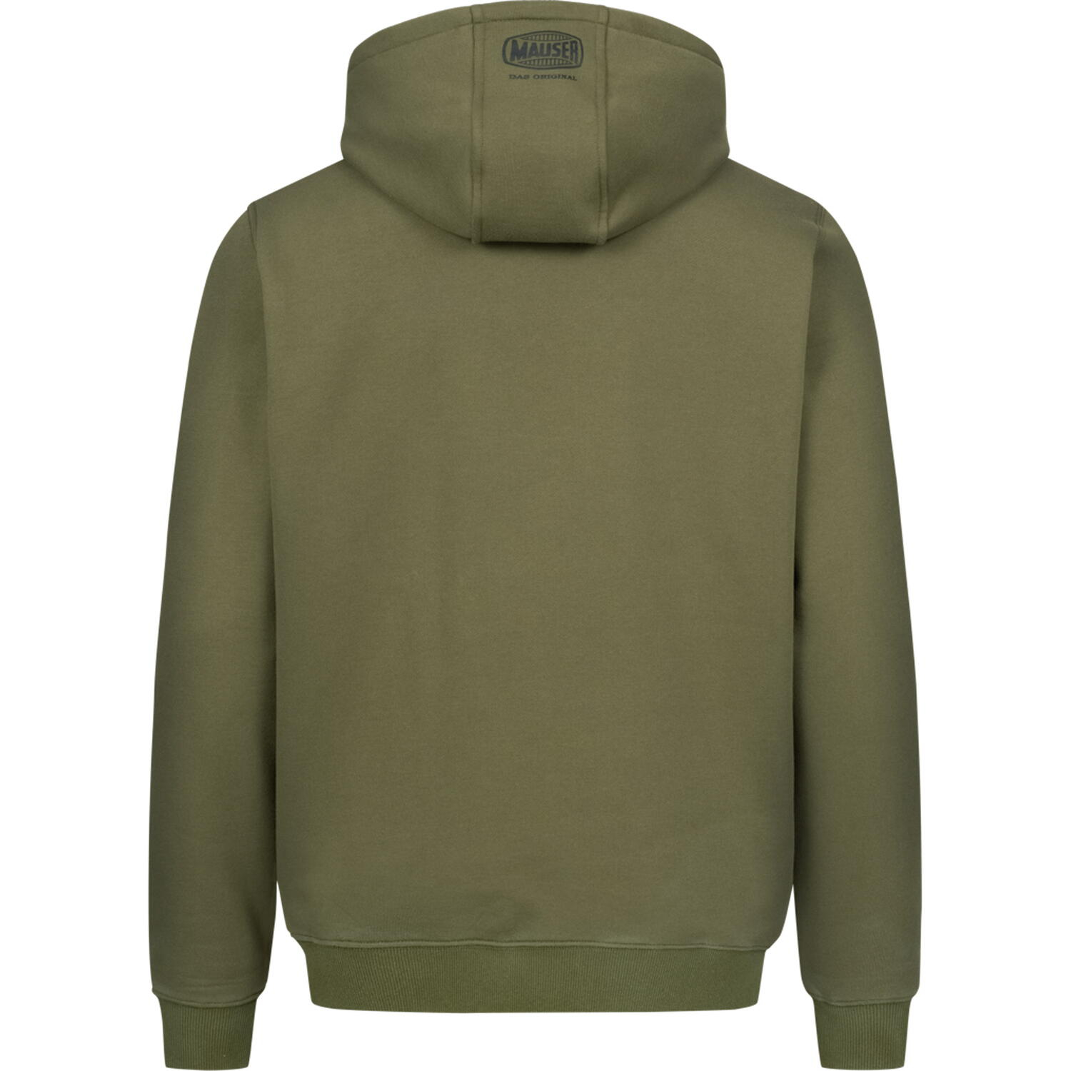 Hanorac Mauser în culoarea verde măslin mat, cu un imprimeu mare MAUSER Original.