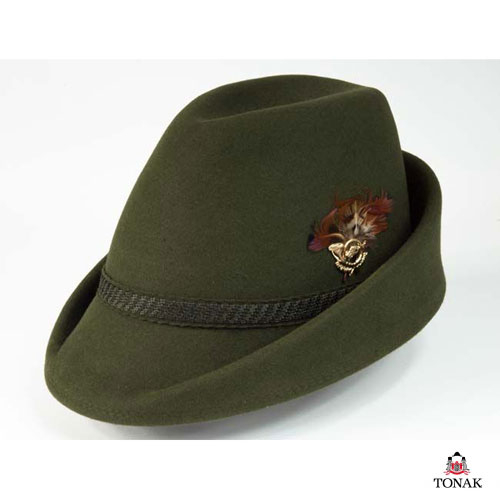 Palarie bavareza pentru vanatoare, din fetru, cu ornament si pana.