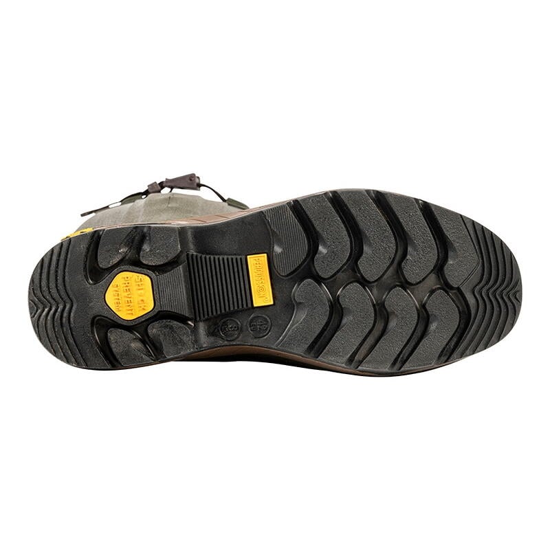 Cauciuc natural impermeabil, căptușeală din neopren de 4 mm, branț detașabil, prelungire pe toată înălțimea căptușei pentru o intrare super rapidă cu cureaua de reglare, talpă exclusivă anti-alunecare Percuție cu crampoane adânci și largi concepute pentru a facilita aderența la mers și evacuarea pământului . Armătură din oțel anti-torsionare, sistem de amortizare exclusiv SPS® (Shock Prevent System) alcătuit dintr-o placă de spumă tip fagure integrată în călcâi în structura tălpii, formă ergonomică.