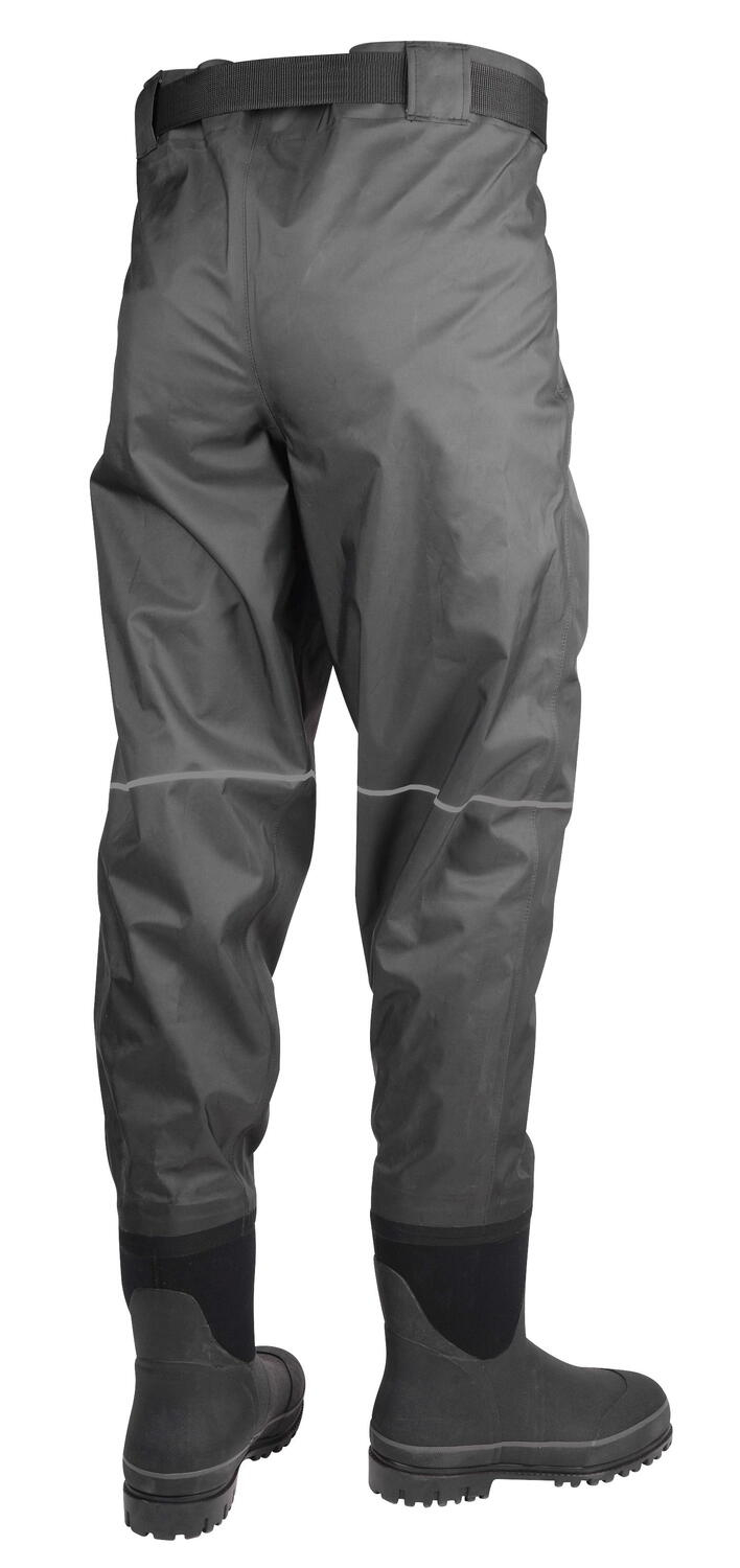 Pantaloni Waders de înaltă calitate, realizate cu cizme ferme și confortabile. Excelent pentru pescuitul în ape curgătoare mai mici, nu prea adânci sau la pescuitul la crap și în toate celelalte situații în care vă apa vă ajunge până la înălțimea genunchiului. Echipată cu curea reglabilă și 2 genți impermeabile pentru a menține accesoriile importante uscate. Cizmele sunt turnate și au tălpi care oferă o aderență bună. Cauciucul în combinație cu neoprenul, face din acești waderși echipamentul ideal pentru pescuitul întreaga zi.