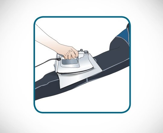 - Preincalziti fierul de calcat: Setati temperatura fierului pe nivelul "Acrylic" (sub 135°C) si nu utilizati aburi.