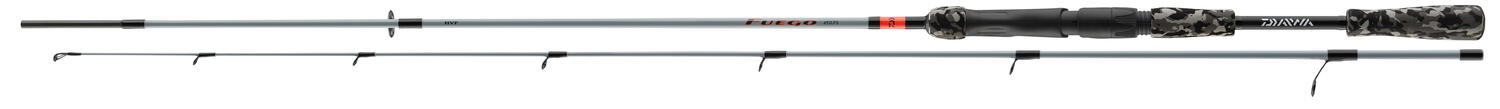 Cu lansetele Fuego Camo, DAIWA oferă o serie extinsă de lansete de pescuit moderne cu blank-uri foarte subțiri, care - în funcție de model - acoperă aproape toate aplicațiile pescuitului modern. Datorită blank-urilor rapide, lansetele Fuego Camo sunt potrivite în special pentru jigging cu năluci soft. Utilizarea materialului exclusiv din fibră de carbon HVF DAIWA pentru blank, permite proiectarea lansetelor de spinning foarte agere și ușoare, care asigură o manevrabilitate plăcută și sunt foarte rezistente. Aceste lansete au un aspect modern datorită culorii la modă-gri și sunt echipate cu mandrină originală Seaguide și mânerul finisat EVA de camuflaj premium. Mandrina premium concept Seaguide Alien, permite contactul instantaneu cu blank-ul datorită fantelor laterale, care optimizează prezentarea și detectarea trăsăturilor. Forma ergonomică a mandrinei garantează o manevrabilitate confortabilă și permite distracția permanentă la pescuit.