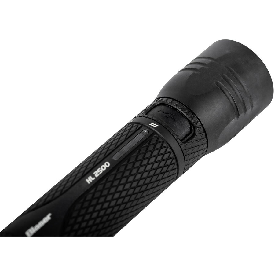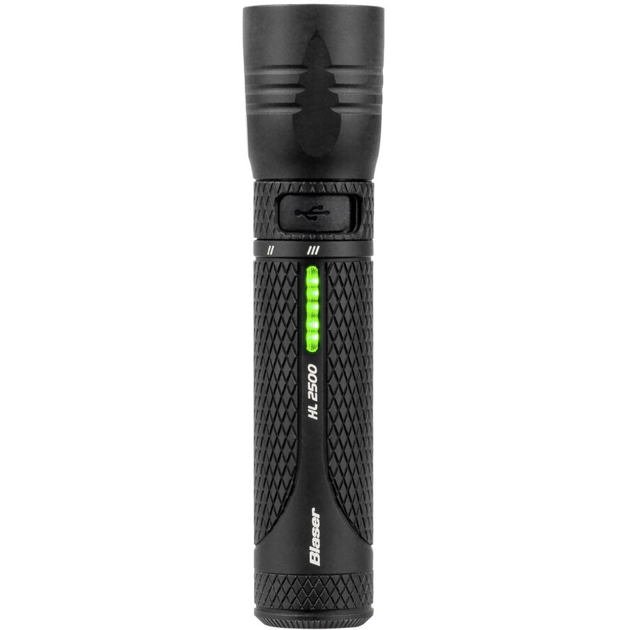 Fasciculul luminos larg perfect pentru căutarea potențialelor urme de animale după o împușcătură reușită, precum și pentru urmărirea vânatului rănit. Blaser HL2500 este o lanternă compactă și puternică, cu o carcasă din aluminiu T6 și o lungime totală de 13 cm. HL (hunting light) înseamnă „lumină de vânătoare”, deoarece lanterna a fost dezvoltată special pentru activitățile de vânătoare și cerințele acestora.