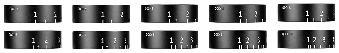 Blaser QDC+ vă permite să reglați distanța de tragere până la o rază de 500 m direct pe turela de înălțime a lunetei dumneavoastră Blaser B2. Pentru o adaptare optimă la propria carabină, sunt incluse zece inele gravate interschimbabile, care acoperă o gamă largă de muniții de vânătoare. În plus, pe un inel gol pot fi aplicate marcaje individuale.