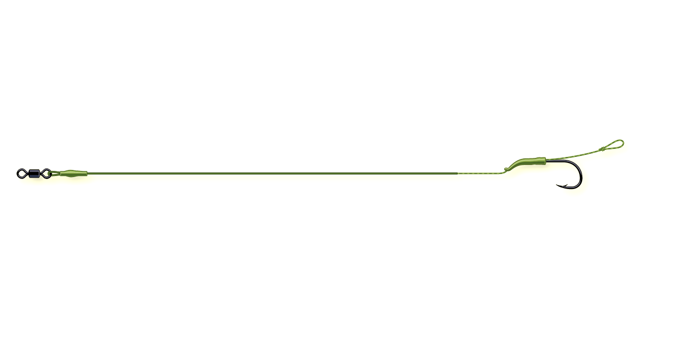 Această montură a fost cea care a generat multe capturi cu crapi mari, de-a lungul anilor. Partea rigidă a firului cămășuit (25 lb) face dificil pentru pește să scuipe momeala/cârligul.