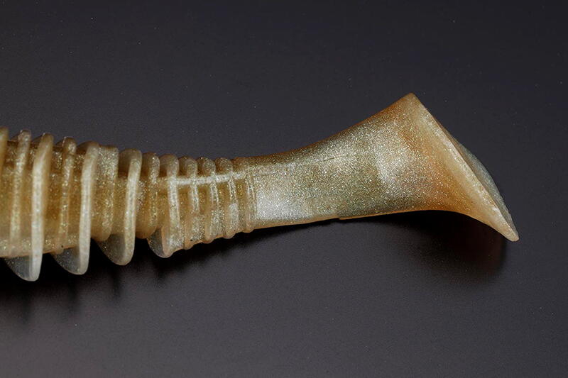 Nervuri multiple mari și adânci prevăzute pe tot corpul captează cu fermitate curgerea apei, generând vibrații și turbulențe. Permite o acțiune precisă la lansare chiar și cu aruncări mai puțin reușite.