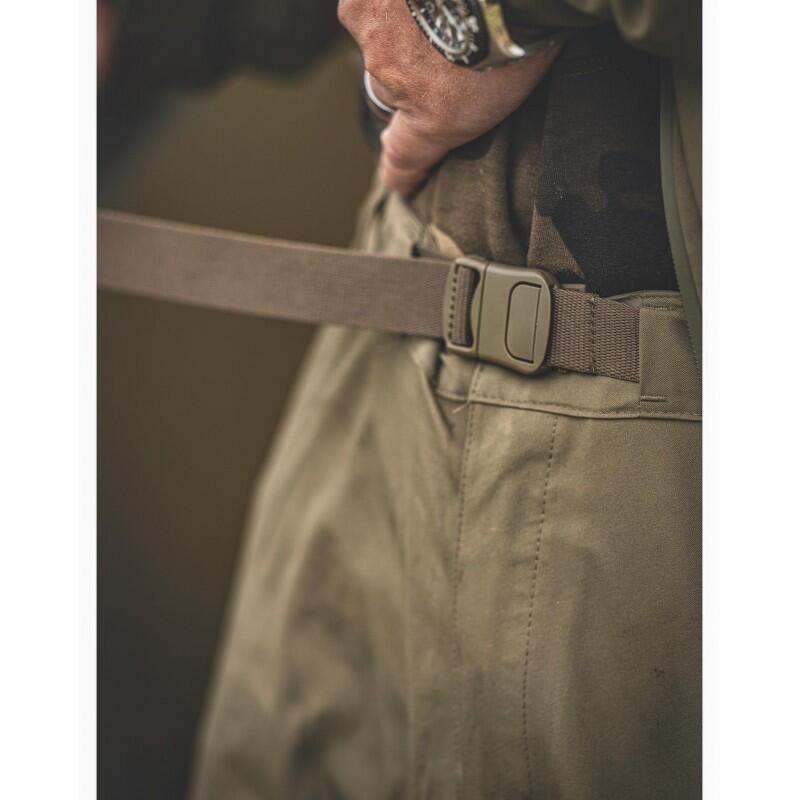 Pantalonii DRYKORE Over Trousers sunt fabricați din material respirabil, ușor, care încorporează o membrană hidrofilă 15k lider în industrie, laminată și sigilată la cusături pentru a se asigura că rămâne complet impermeabil, chiar dacă sunteți surprins de ploaie torenţială pentru o perioadă îndelungată de timp. Sunt, de asemenea, rezistenți la vânt, așa că vă vor ajuta să vă mențineți căldura corpului. Folosirea acestui material ușor, dar dur și rezistent, înseamnă comoditate, iar materialul este respirabil pentru a vă asigura că nu transpirați. Materialul prezintă, de asemenea, „elasticitate mecanică”, astfel încât supra-pantalonii DRYKORE se potrivesc bine formei corpului de la talie în jos, permițând în același timp libertate completă de mișcare și fără a fi excesiv de largi. Fermoare impermeabile pe fiecare parte, care se extind până la genunchi și permit accesul ușor la buzunare pantalonilor de dedesubpt. Acest lucru elimină frustrările manevrelor incomode de a vă lupta pentru a accesa cheile mașinii sau telefonul mobil care sunt în buzunarele pantalonilor de dedesubt! Clape ajustabile cu velcro pe gambe, astfel încât sunt ușor și rapid de îmbrăcat. Pentru a fi ajustabili în talie, s-a optat pentru o combinație de curea cu eliberare rapidă cu o bandă elastică, care mențin pantalonii DRYKORE Over în siguranță și împiedică căderea lor, dar vă permite să-i scoateți rapid și ușor. În plus, acești pantaloni au și petice din microfibră pentru genunchi, care nu numai că măresc durabilitatea într-o zonă predispusă la uzură, dar și îmbunătățesc confortul atunci când cu genunchii pe sol. Pantalonii DRYKORE Over sunt și în verde măsliniu, pentru a se potrivi cu jachetele de culoare și sunt disponibili în gamă de mărimi.