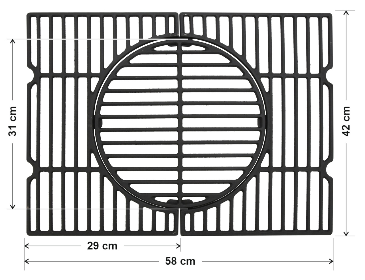 Accesoriu premium pentru gratare de dimensiuni mari. Gratarul din fonta Cattara Royal Classic este format din trei parti si include o sectiune centrala detasabila cu diametrul de 31 cm. Construit integral din fonta masiva, acest gratar ofera o distributie excelenta a caldurii si durabilitate superioara, chiar si in conditii de utilizare intensiva.