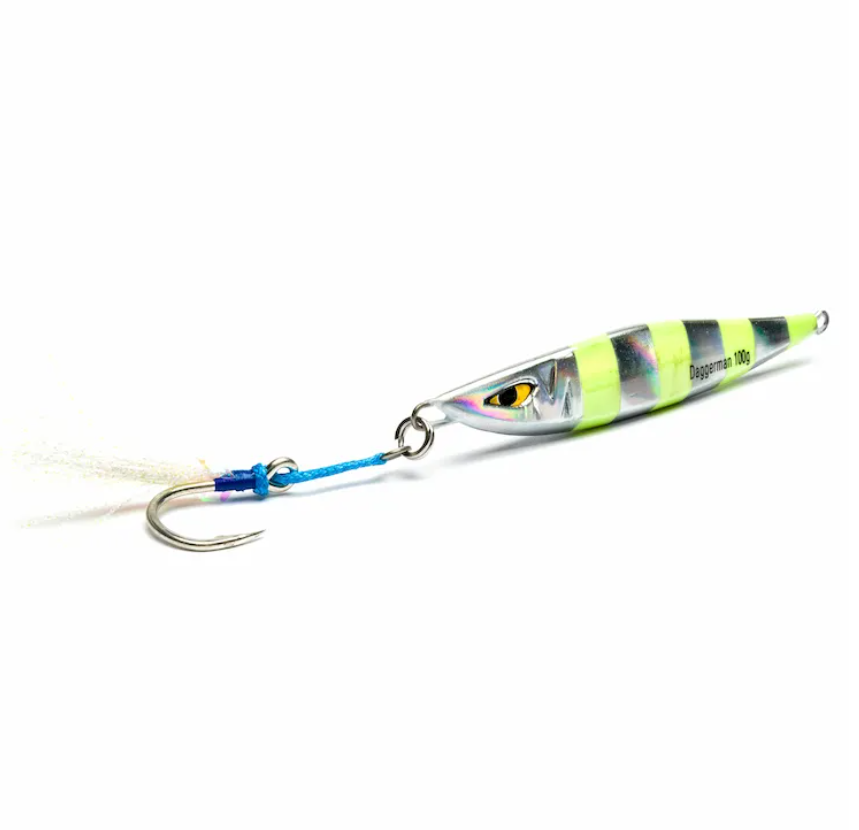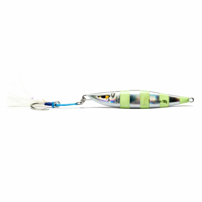 Daggerman Jig este un jig vertical ponderat, conceput pentru a ținti prădătorii agresivi precum Amberjack, Yellowtail și Dogtooth Tuna. Daggerman este cel mai bine prezentat în jigging scurt, rapid, cu pauze scurte. Forma sa aerodinamică îl ajută pe Daggerman să urce în coloana de apă, atrăgând atenția răpitorilor din apropiere și care seamănă cu mișcarea naturală a unui pește momeală care se luptă.
