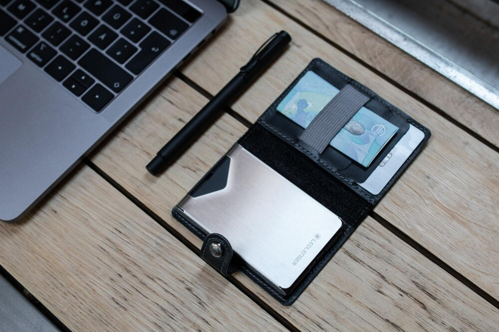 Husa din piele oferă un aspect de lux și include toate compartimentele pentru carduri pe care le veți dori vreodată. Banda elastică și dispozitivul de fixare cu capse vă asigură că banii și cardurile dvs. de credit vor fi în siguranță.