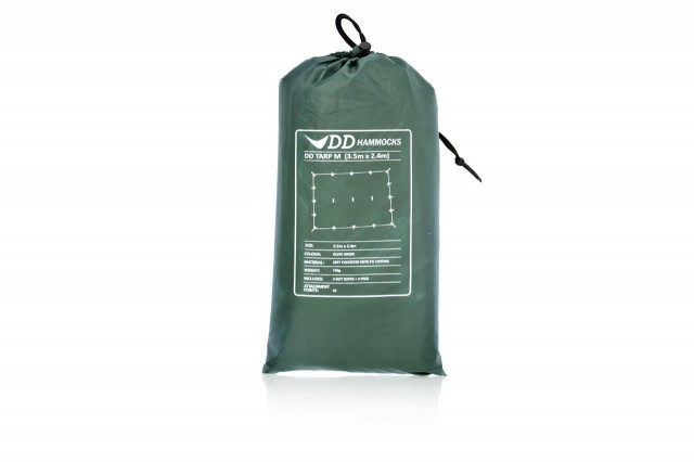 Tenda M Prelata Olive Green DDHammocks 350x240 cm - 0610370637265 Tenda M Olive Green. Exista cerere pentru o tenda mai lunga si ingusta fata de bestsellerul de 3×3 mt. Asadar am reusit sa cream gama M. Gama M este ideala pentru campingul cu hamacul. Protejeaza mai mult capul si picioarele avand lateralele scurtate pentru a economisi din greutate. Este acoperisul perfect Se potriveste cu toate hamacele DD Hammock si o recomandam pentru o singura persoana si bagaj. O poti folosi in forma literei A pentru acoperisul hamacului sau o poti folosi ca Sopron pentru intrarea in cort. Tenda M Olive Green are 19 puncte de legatura ranforsate si sigure care va ofera mai multe posibilitati de setup. Pentru Ghid de instalare a Tendelor Prelatelor > Click Aici Caracteristici: - Greutate 740 g; - Dimensiuni 350 × 240 cm; - material: 190T polyester cu PU - rezistenta la apa 3000mm