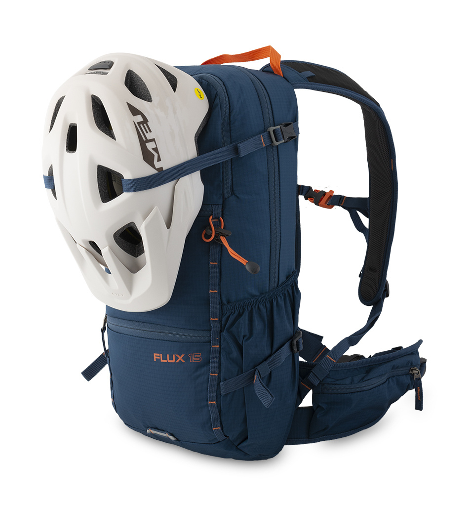 • Curele de compresie frontale: Permite prinderea unei căști de bicicletă sau a unui caschet complet, dar și a altor echipamente.