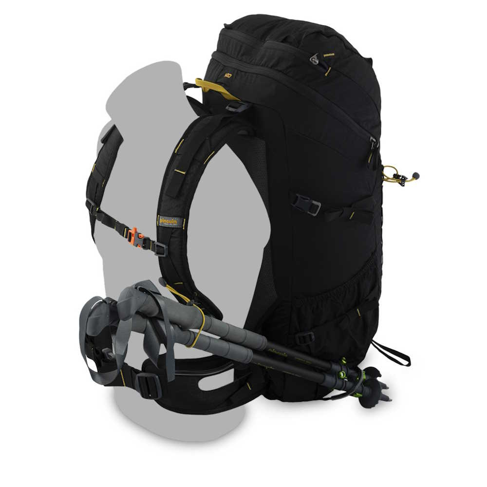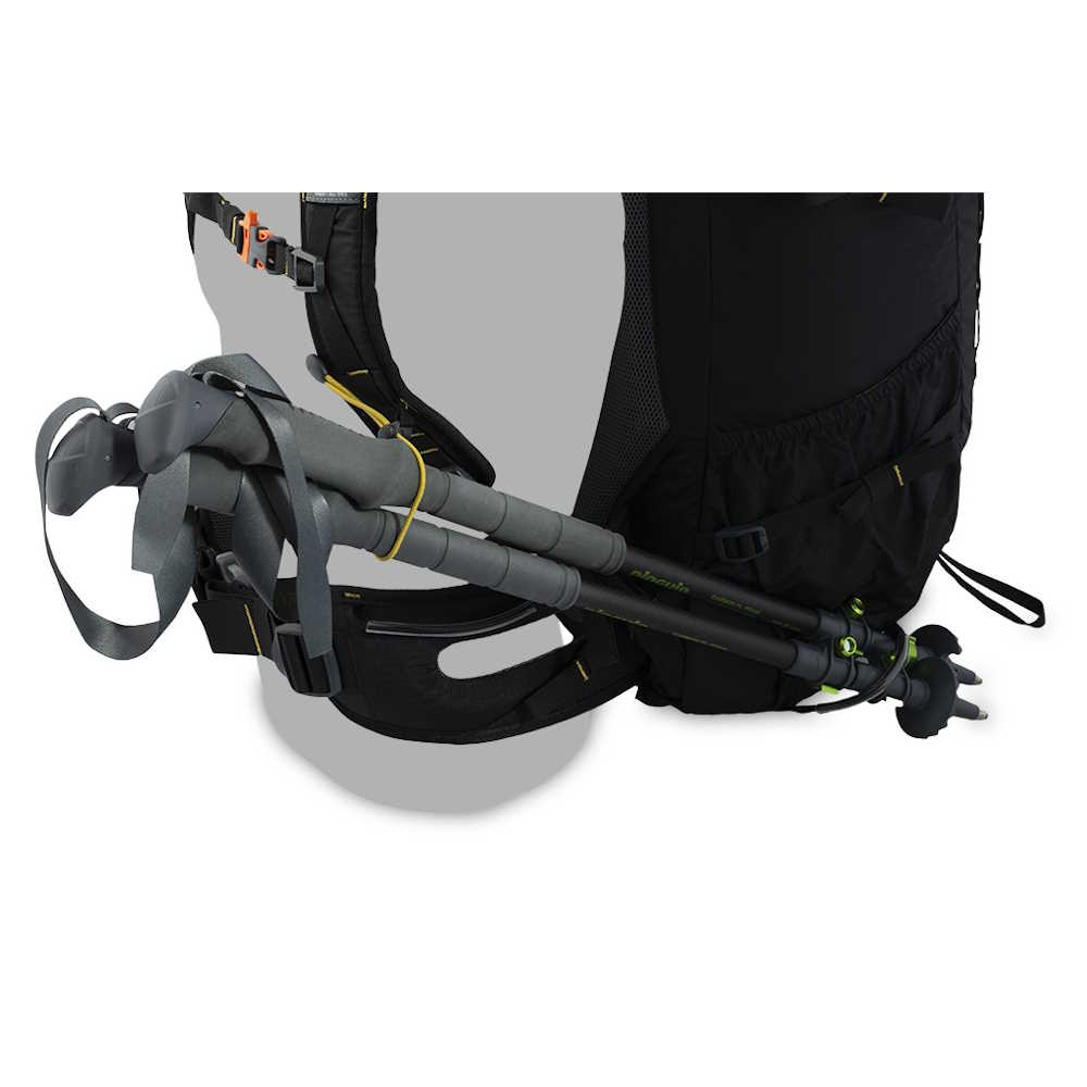 • Sistem de prindere pentru bete de trekking, pe breteaua stanga si sub buzunarul lateral din plasa.