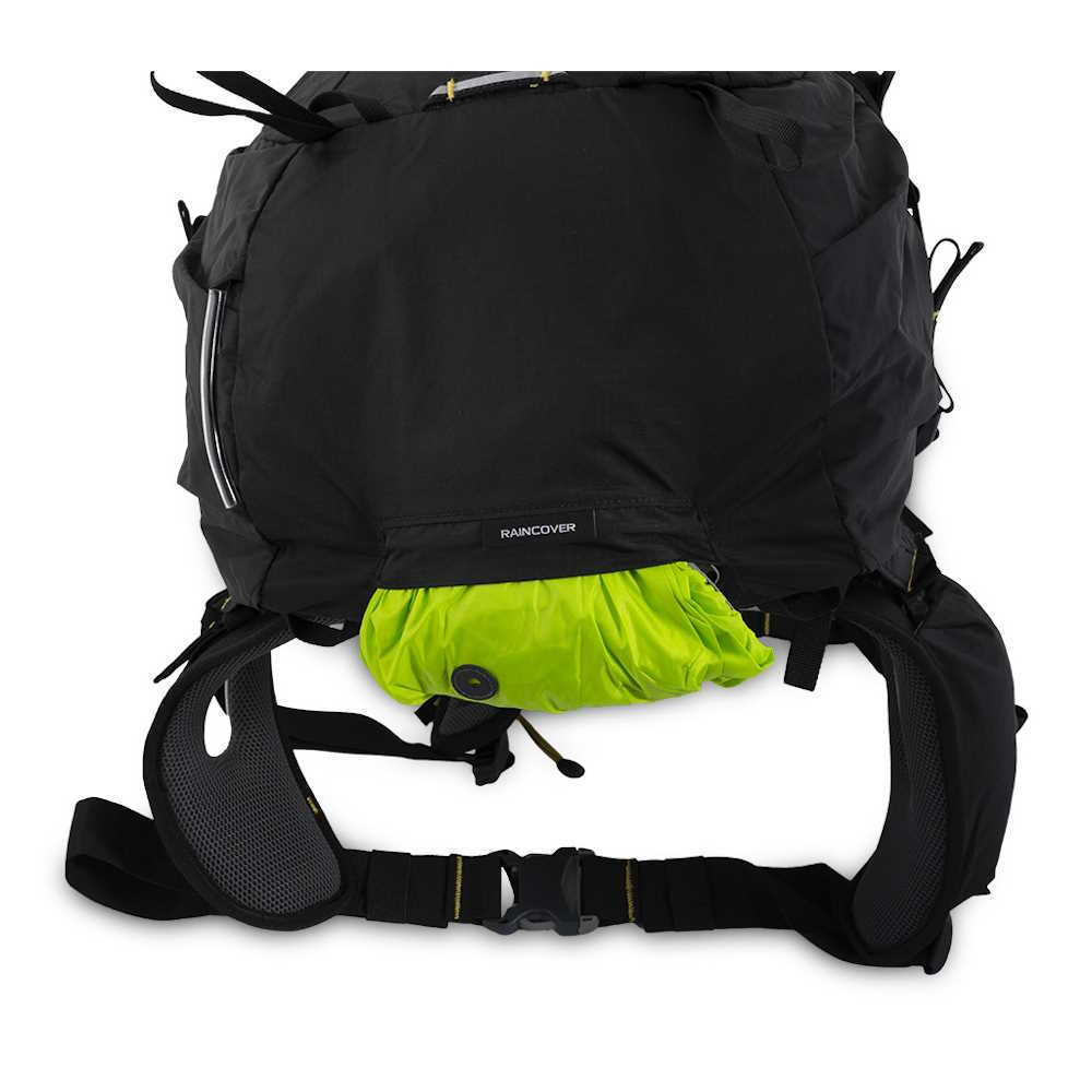 • Husa de ploaie integrata, intr-un buzunar separat, situat la baza rucsacului.