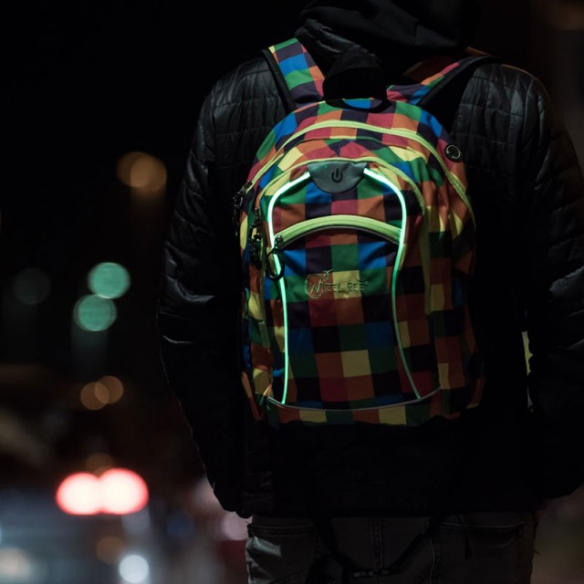 Noile rucsacuri Wheel Bee combină designul inovator cu siguranța. LED-ul integrat verde și benzile reflectorizante suplimentare oferă o vizibilitate maximă și siguranță în amurg și întuneric.