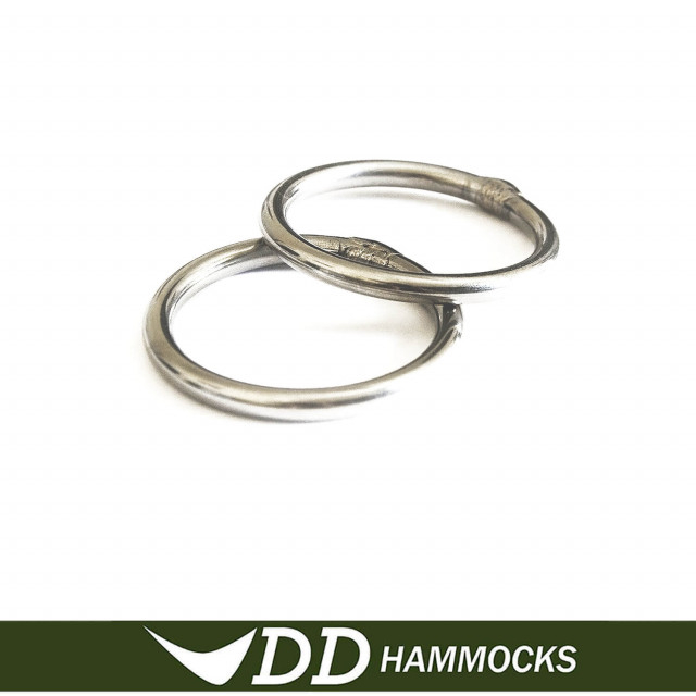 Set 2 Inele otel DD Hammocks - 0707273933423 Ideale pentru ancorarea hamacului. Aceste inele de otel cantaresc doar 64 de grame si suporta o greutate maxima de 1750 kg. Caracteristici: - Diametru exterior: 48 cm - Greutate totala: 64 grame